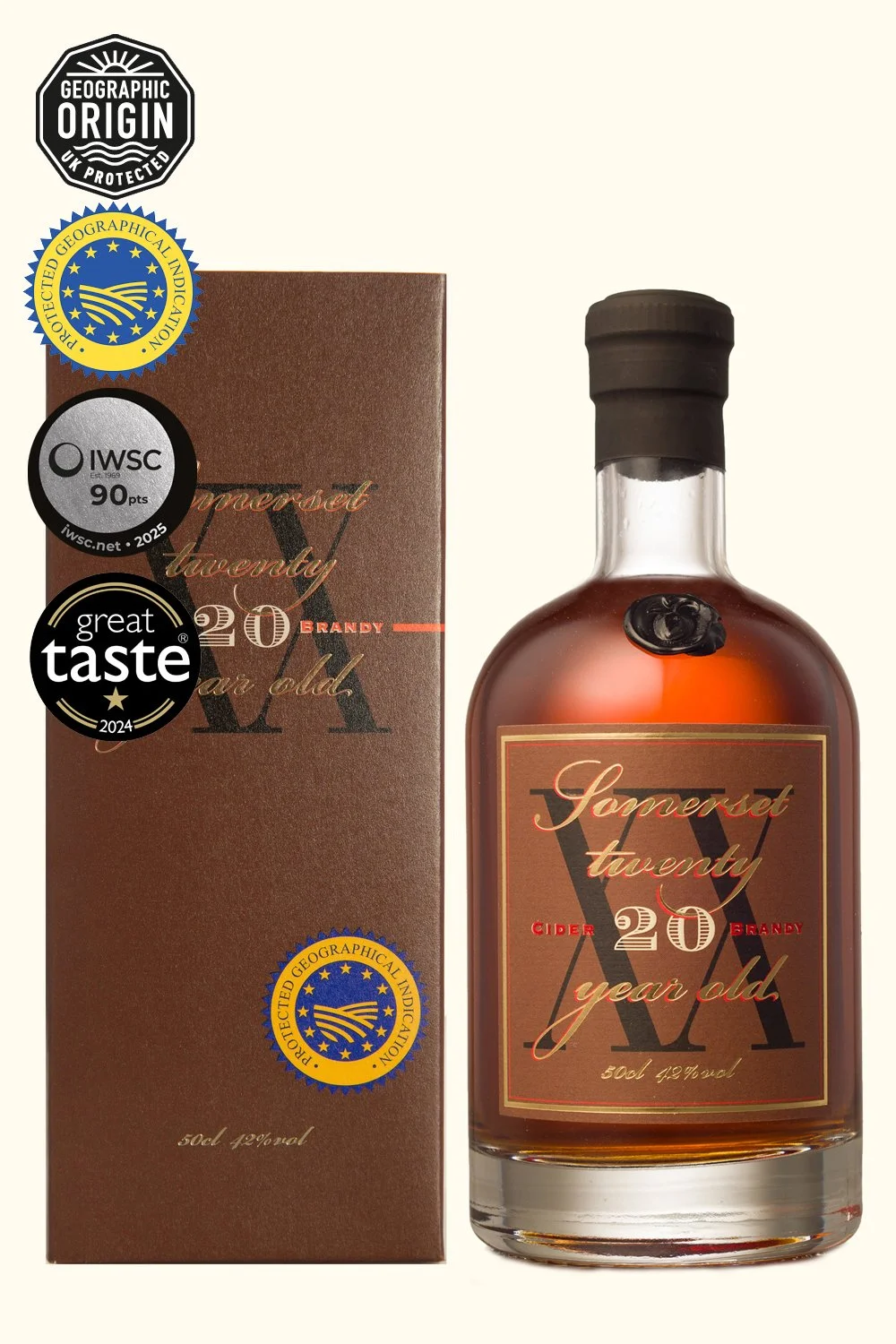 England’s original cider brandy — the pioneering spirit that helped define modern British craft distilling. Distilled from apples grown in traditional Somerset orchards and matured for three years in oak casks, it captures the pure character of the fruit alongside the earliest influence of wood. The result is a bright, expressive brandy that balances freshness with subtle complexity, offering both approachability and authenticity in every sip.