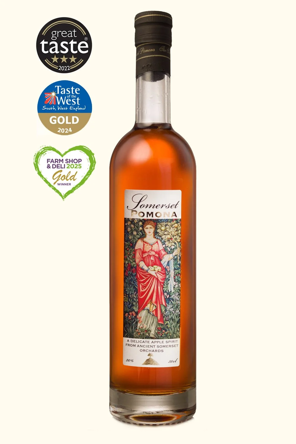 A distinctive Somerset classic, created by blending cider brandy with fresh apple juice and ageing the result in oak casks. This process produces a rich, fortified-style drink with remarkable depth and smoothness. Combining the freshness of apple with the complexity of maturation, Pomona offers a luxurious and comforting profile ideal for after-dinner enjoyment.